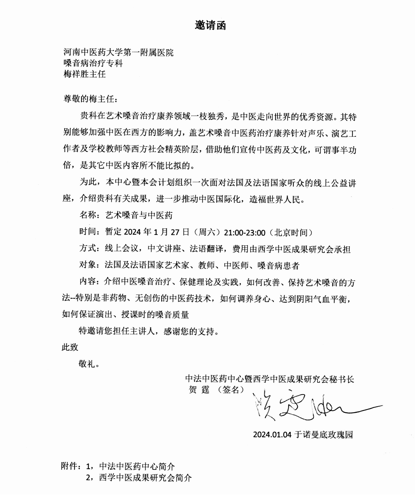 中法中医药学术交流会邀请函