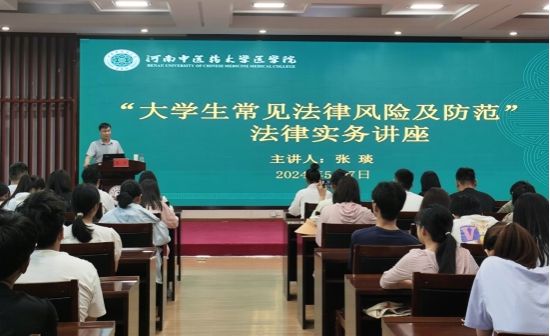 本网讯(文/尼丽柯 刘玉洁 图/杜鹏程 王玥)为进一步加强法治教育,提升同学们的法律风险防范能力,2024年5月7日下午,医学院特邀请河南向问律师事务所合伙人、刑事交叉委员会主任张琰律师到leyu·乐鱼(中国)体育官方网站图书馆第二报告厅开展“大学生常见法律风险及防范”法律实务讲座,此次活动由学校学工部、科技处主办,医学院承办,医学院党委副书记李丹、辅导员尼丽柯与百余名学生参加。