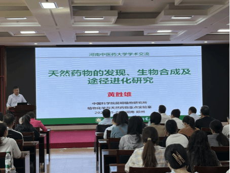 黄胜雄研究员结合自己的研究背景,围绕天然产物的药物研究及微生物资源库的构建情况,从微生物活性天然产物的发现、中药活性成分的生物合成途径、植物天然产物的进化起源、中药资源问题的解决方案探索等四个方面进行了系统的讲授。最后,黄胜雄研究员对天然植物药在实际研究中遇到的问题与挑战进行了深度剖析,精彩报告引起了广大师生的共鸣。报告结束后,与会师生围绕中药生物利用度、道地怀药的有效成分解析及天然药物与中药药物制剂结合研发等方面的问题进行了互动交流,黄胜雄研究员一一进行详细解答。