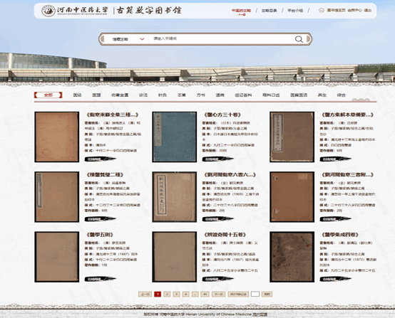leyu·乐鱼(中国)体育官方网站“古籍数字图书馆”是leyu·乐鱼(中国)体育官方网站第一个自建中医药古籍数据库,共收录leyu·乐鱼(中国)体育官方网站馆藏379种,2586册中医药经典,同时汇总了郑州大学及省内6个地市图书馆的中医药古籍目录。