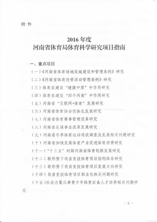 附件2《2016年度河南省体育局体育科学研究项目指南》