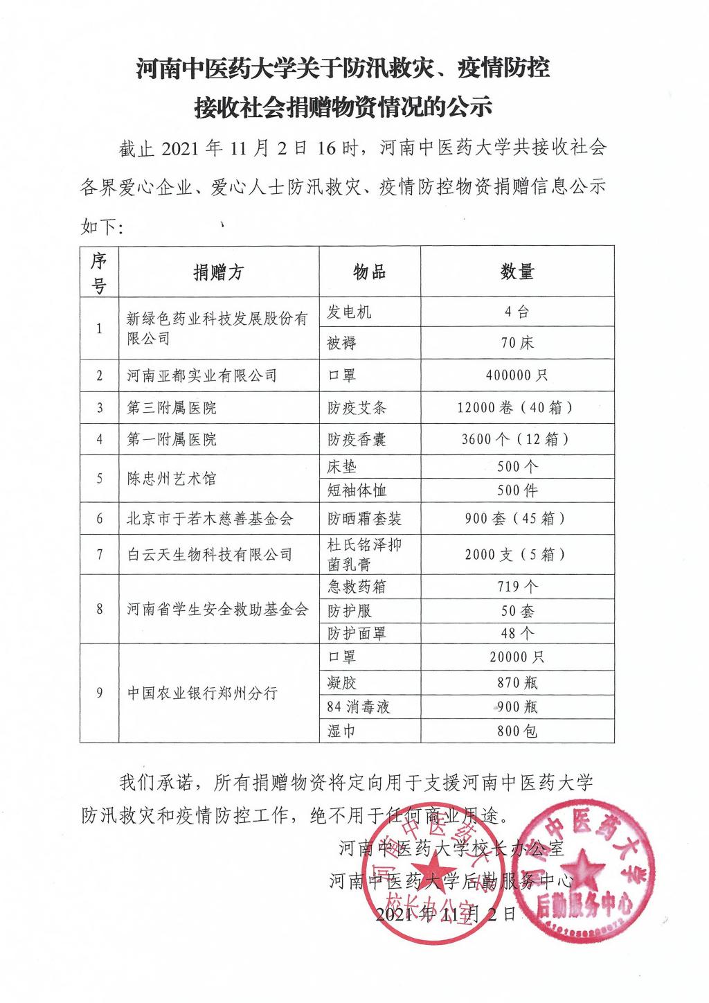 leyu·乐鱼(中国)体育官方网站关于防汛救灾、疫情防控 接收社会捐赠物资情况的公示