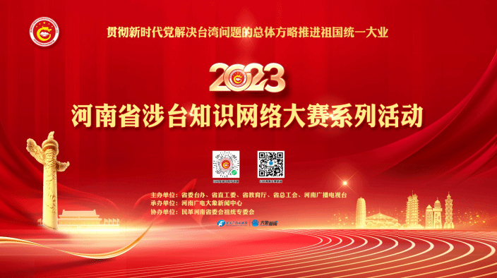 为扎实做好学习宣传贯彻党的二十大精神和涉台宣传教育工作,按照中央和省委的安排部署,由省委台办、省直工委、省教育厅、省总工会、河南广播电视台联合主办的“贯彻新时代党解决台湾问题的总体方略,推进祖国统一大业”2023年河南省涉台知识网络大赛已于3月28日启动。请各部门各单位积极组织师生参与答题活动,具体事项如下: