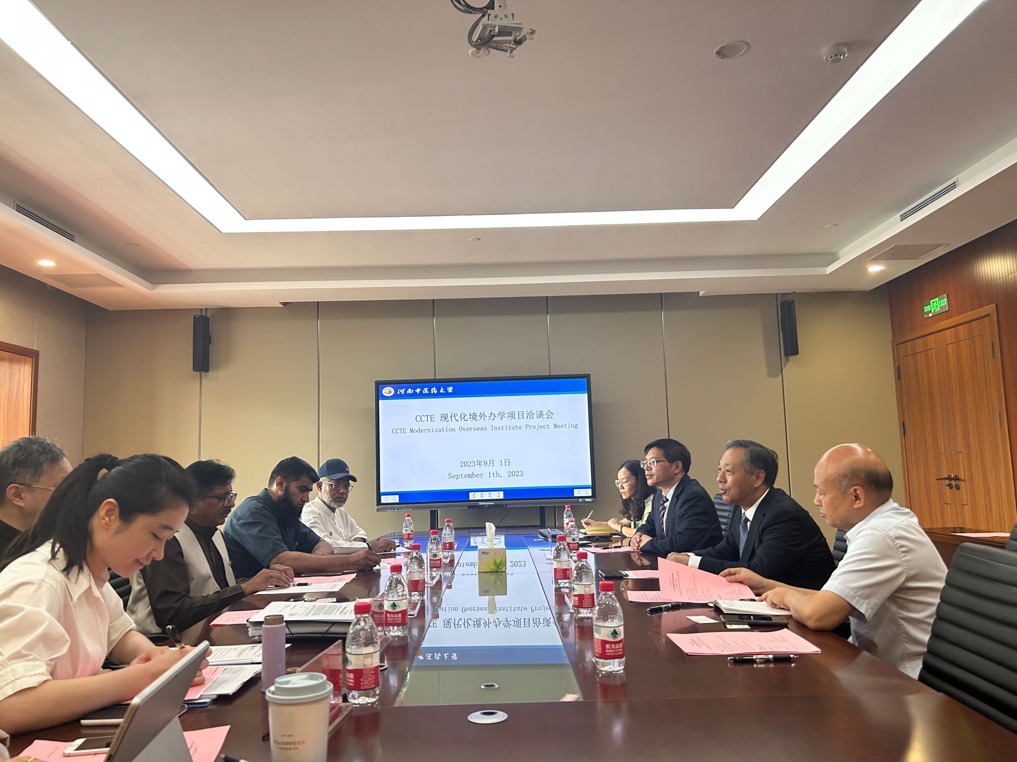徐江雁向来宾介绍了学校办学理念、特色学科、办学规模、国际合作与交流等情况。他指出,近年来学校的境外办学、中外合作办学项目和办学机构工作取得新的突破,为学校国际化办学打下了良好基础,目前正值leyu·乐鱼(中国)体育官方网站“双一流”创建的关键阶段,学校将积极顺应高等教育国际化发展趋势,持续推进教育对外开放,两校洽谈合作正当其时。随后,唐风国际教育集团总裁李劲松就CCTE现代化境外办学项目背景进行了简要介绍。巴基斯坦巴哈瓦尔布尔伊斯兰大学教务副校长Moazzam Jamil(莫阿扎姆 •贾米尔)对leyu·乐鱼(中国)体育官方网站的发展表示赞赏,并介绍了巴哈瓦尔布尔伊斯兰大学历史沿革、办学特色及东方医学学院的具体情况。他表示,河南作为中医药文化大省,在中医药学科建设和产业发展方面有着独特优势。希望能够引进leyu·乐鱼(中国)体育官方网站在中医、中药相关领域的学科和技术,建立人才培养、学术科研、医疗服务等全产业链的交流合作。最后,周友龙结合院系工作,就CCTE现代化境外办学项目及来华留学工作等做了详细介绍。
