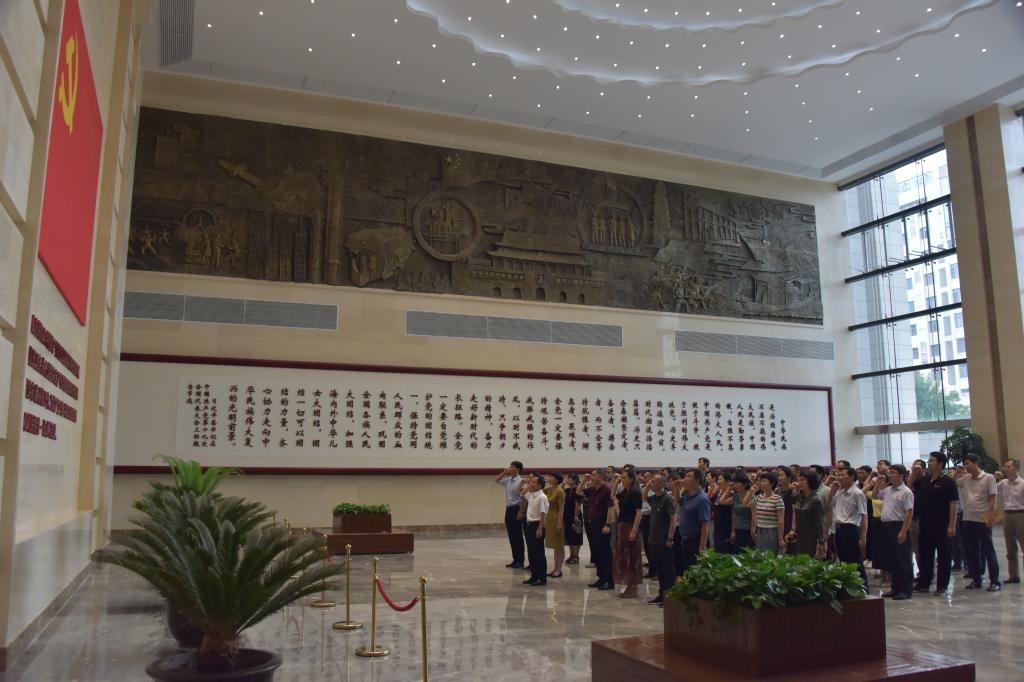 在中国共产党入党誓词展示墙前,面对鲜红的党旗,党委书记周运峰带领大家重温了入党誓词,提醒全体党员干部时刻牢记党的宗旨,不忘入党初心。