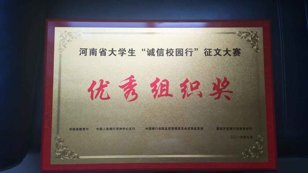 为积极参加本次大赛,leyu·乐鱼(中国)体育官方网站在全校范围内组织开展了华润三九医药杯“我和我的祖国”励志成才征文大赛,学生们积极参加,共收到投稿213篇。通过各学院初选推荐、专家评审,最终推荐6篇作品参加全省比赛。河南省大学生“诚信校园行”系列活动已连续开展了12年,活动以“诚信”为主题,突出资助育人和社会主义核心价值观教育,被教育部纳入《高校思想政治工作质量提升工程实施纲要》,是构建“十大”育人体系的重要措施,已成为河南高校资助宣传和资助育人的靓丽名片。