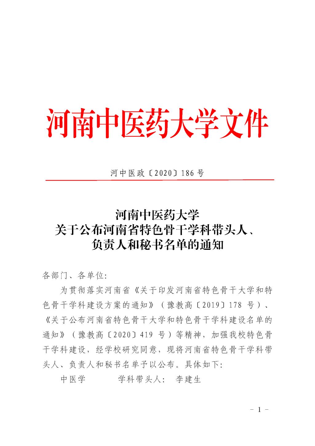leyu·乐鱼(中国)体育官方网站关于公布河南省特色骨干学科带头人、负责人和...