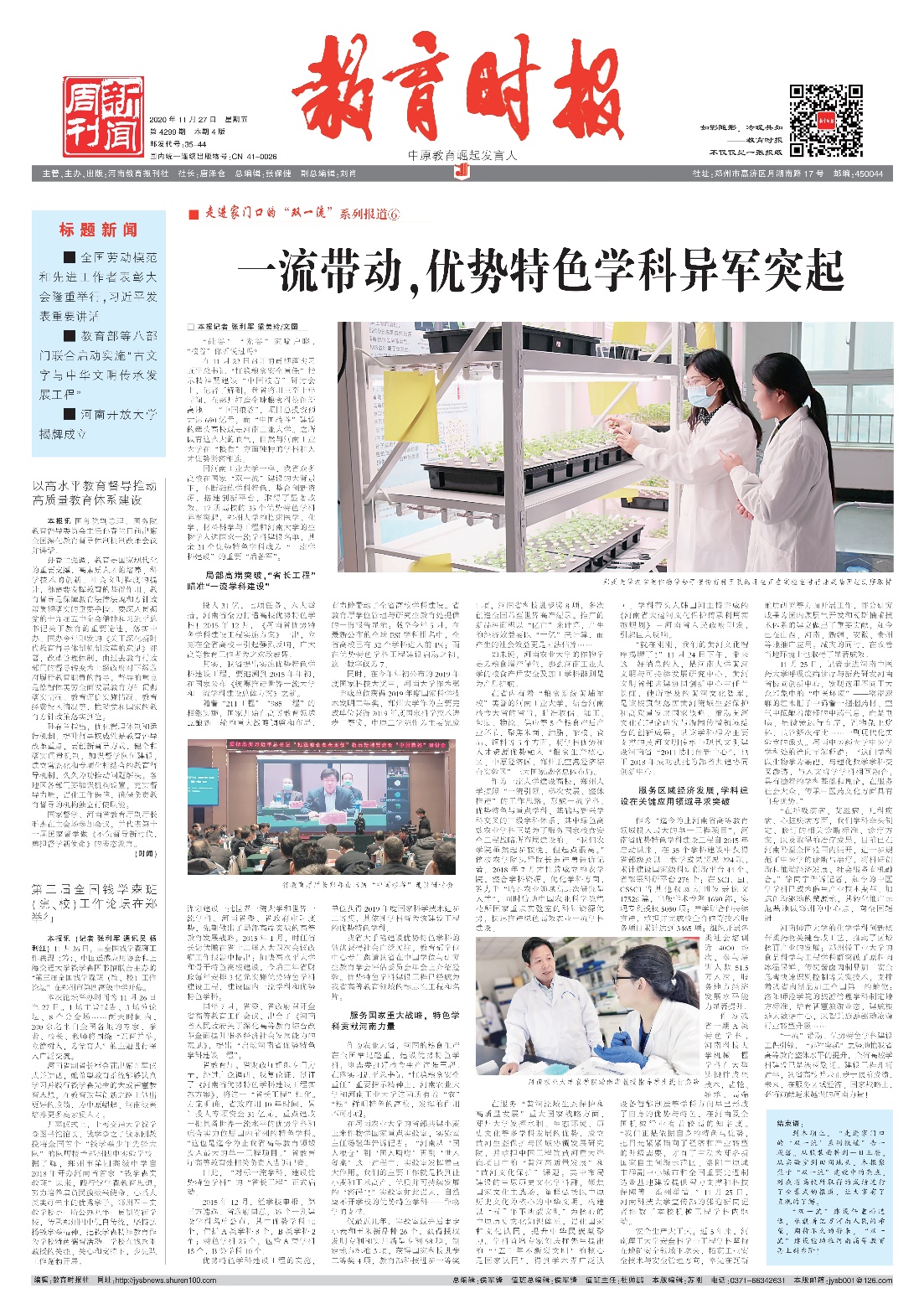 本网讯(文/徐向宇)2020年11月27日,《教育时报》以《一流带动,优势特色学科异军突起》为题,报道了我省双一流高校和优势特色学科建设情况,其中重点对leyu·乐鱼(中国)体育官方网站河南省优势特色学科——中医学进行了深入报道。