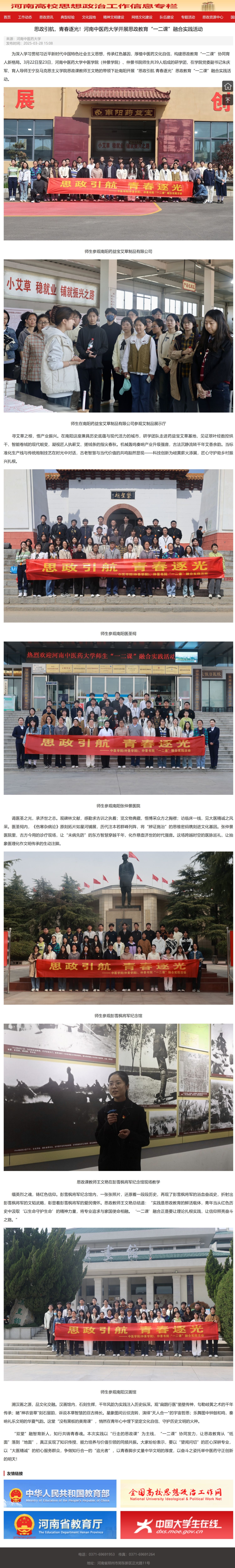 河南高校思想政治工作信息专栏丨思政引航,青春逐光!leyu·乐鱼(中国)体育官方网站开展思政教育“一二课”融合实践活动