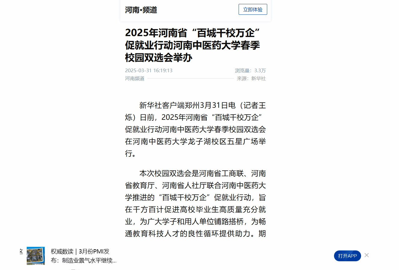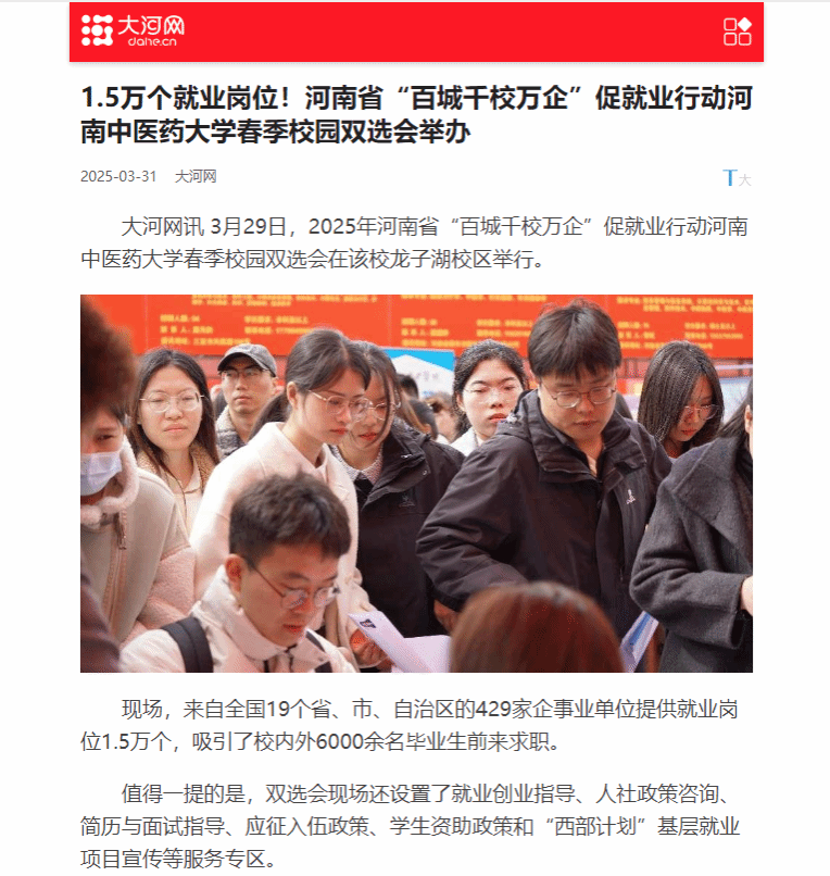 人民网丨2.5个岗位抢1个学生 河南政企校携手点燃春招热潮