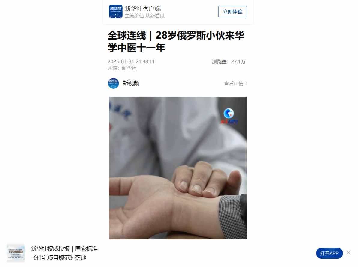 除了学中医,阿利还热衷于向世界展示真实的中国。他先后游历中国30多座城市,并在网络社交平台运营个人账号,讲身边事,讲中国文化,讲中国美食。