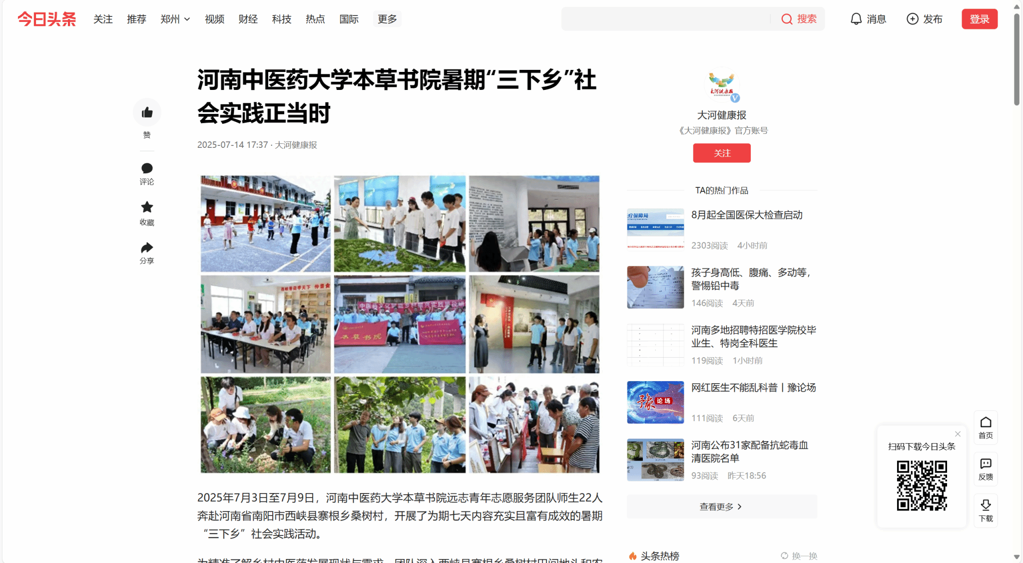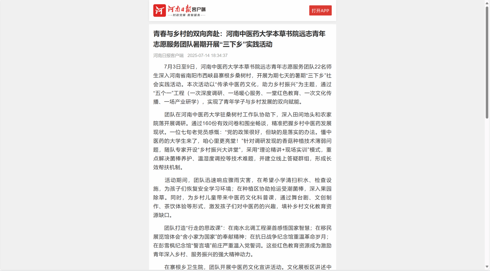 河南日报丨一线淬炼岐黄之术 青春撒播中医文化