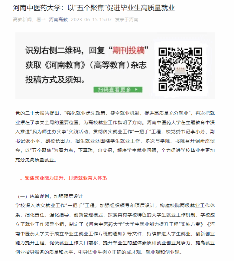 加强引导,转变择业观念。根据学生的专业特点,该校进行个性化指导,帮助毕业生找准定位,树立正确的就业观和择业观。对医药专业毕业生鼓励他们考研深造,对医药相关专业毕业生鼓励他们结合专业特点,优先就业。各个学院、书院针对所属专业特点,召开小型招聘会,邀请相应专业的用人单位,对毕业生进行精准服务。对慢就业的毕业生引导他们全面了解就业政策,调整心理预期,先就业再择业。密切关注他们的思想动态和心理状态,进行个性化指导咨询,解决就业焦虑情绪,增强就业信心。