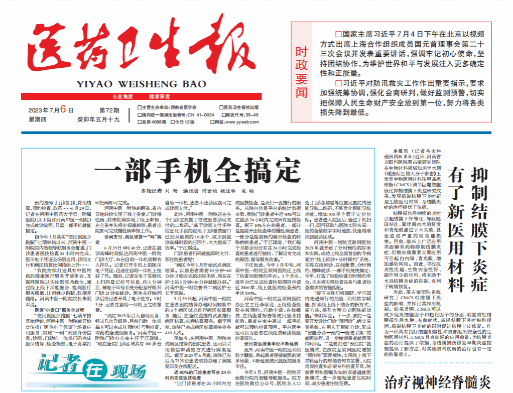 河南中医一附院的跨省、省内异地转诊实现了线上备案,门诊慢性病、特殊疾病实现了线上申报,在全省率先将申报端前移,患者出院即可完成慢性病申报工作。