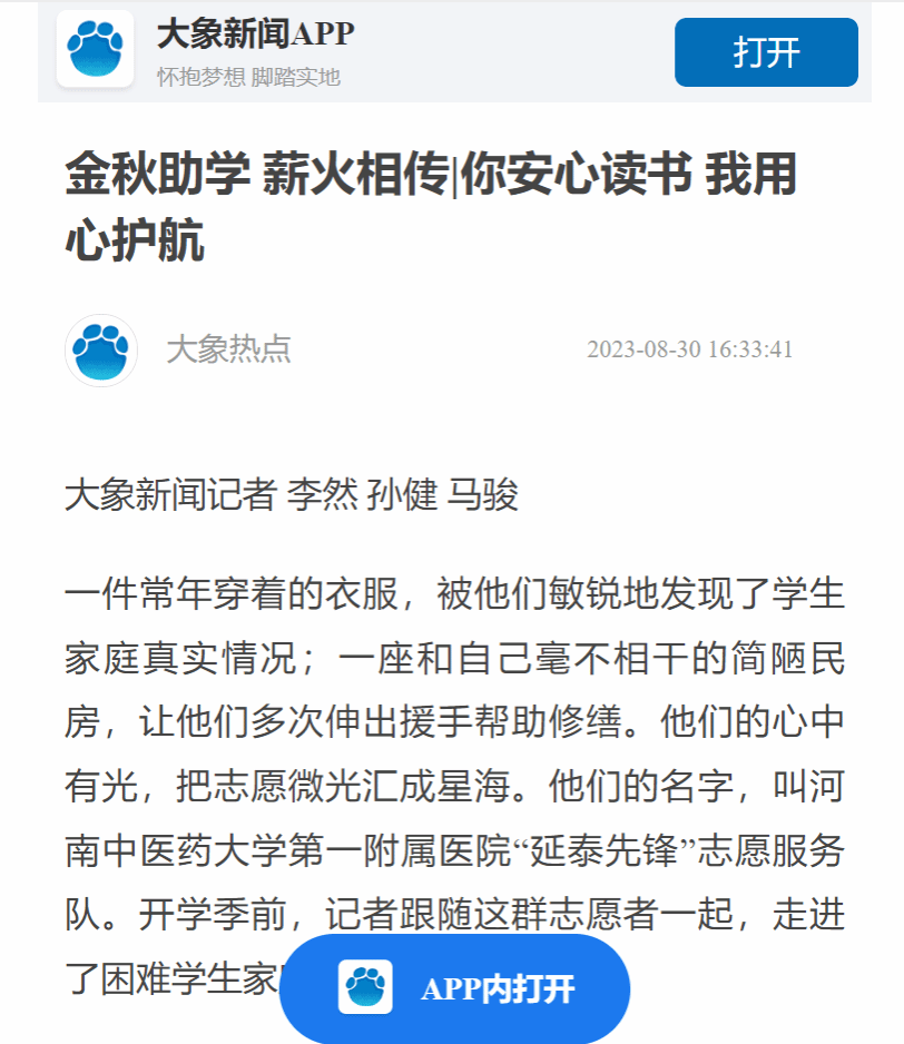 大象新闻丨金秋助学 薪火相传,一附院“延泰先锋”志愿服务队事迹报道
