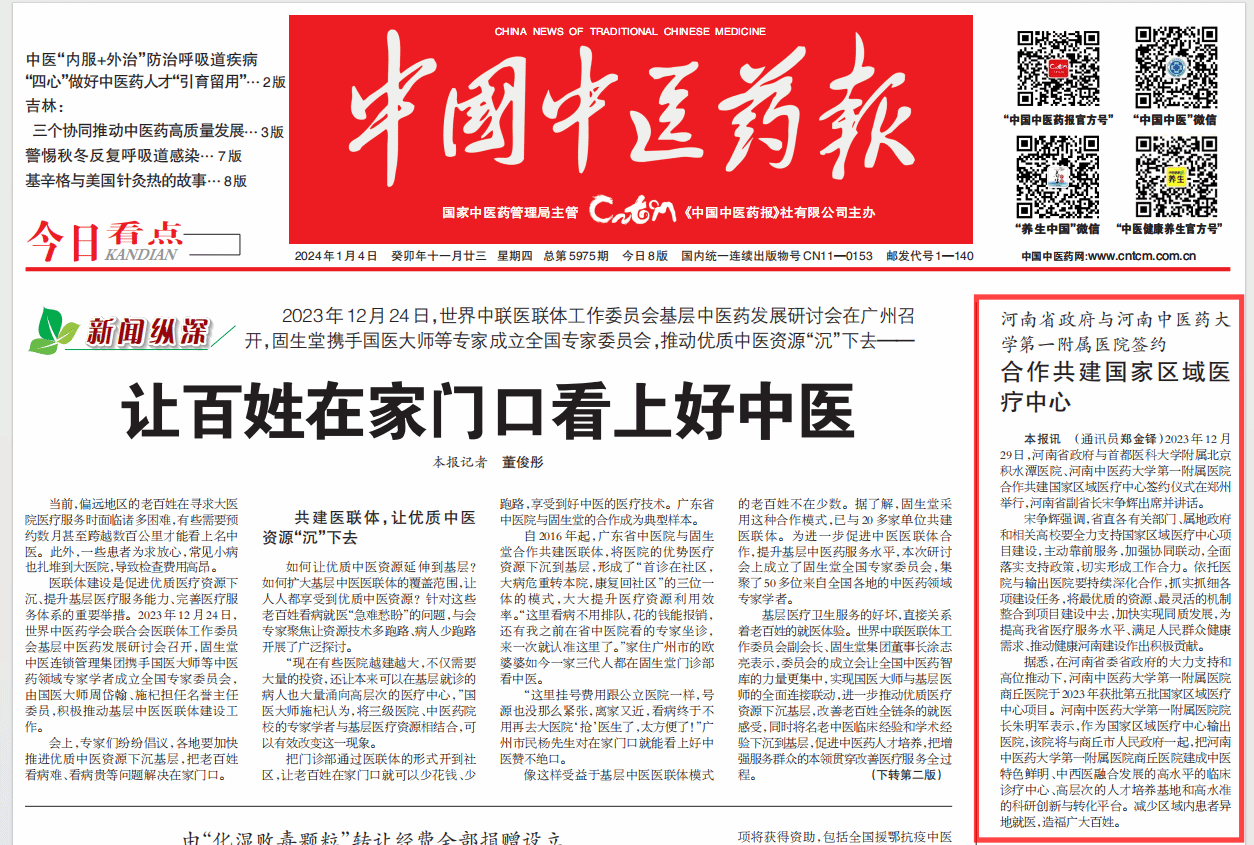 2023年12月29日,河南省政府与首都医科大学附属北京积水潭医院、leyu·乐鱼(中国)体育官方网站第一附属医院合作共建国家区域医疗中心签约仪式在郑州举行,河南省副省长宋争辉出席并讲话。