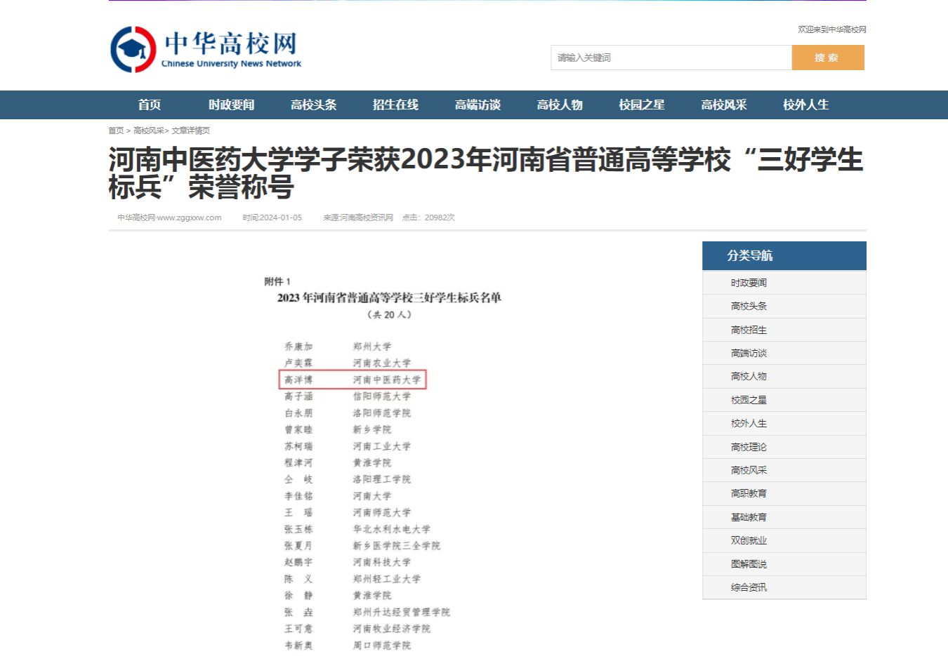 中华高校网丨leyu·乐鱼(中国)体育官方网站学子荣获2023年河南省普通高等学校“三好学生标兵”荣誉称号