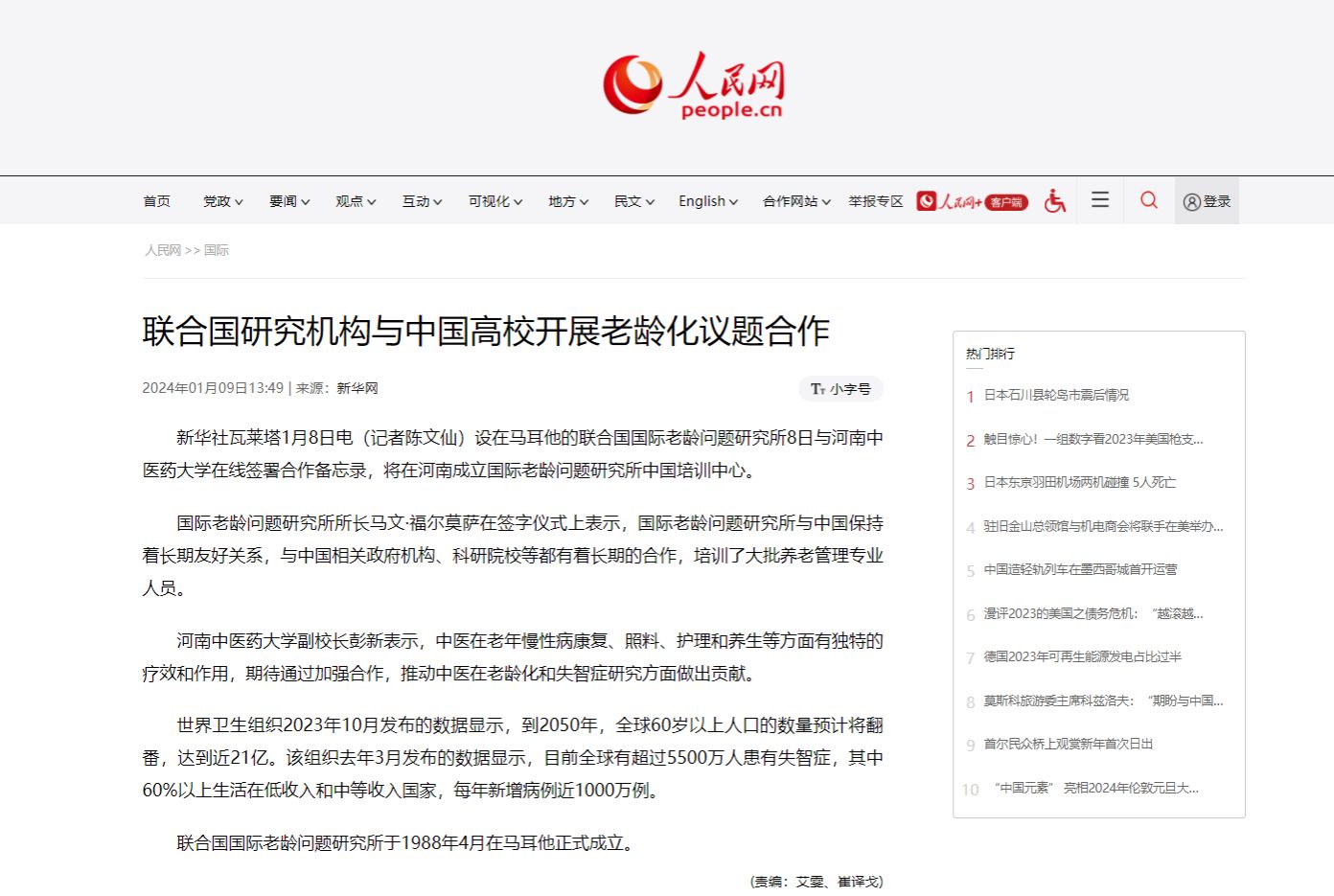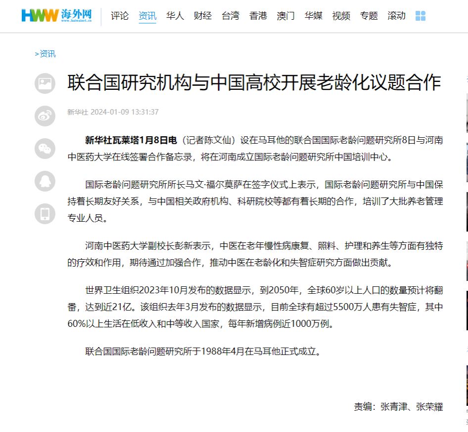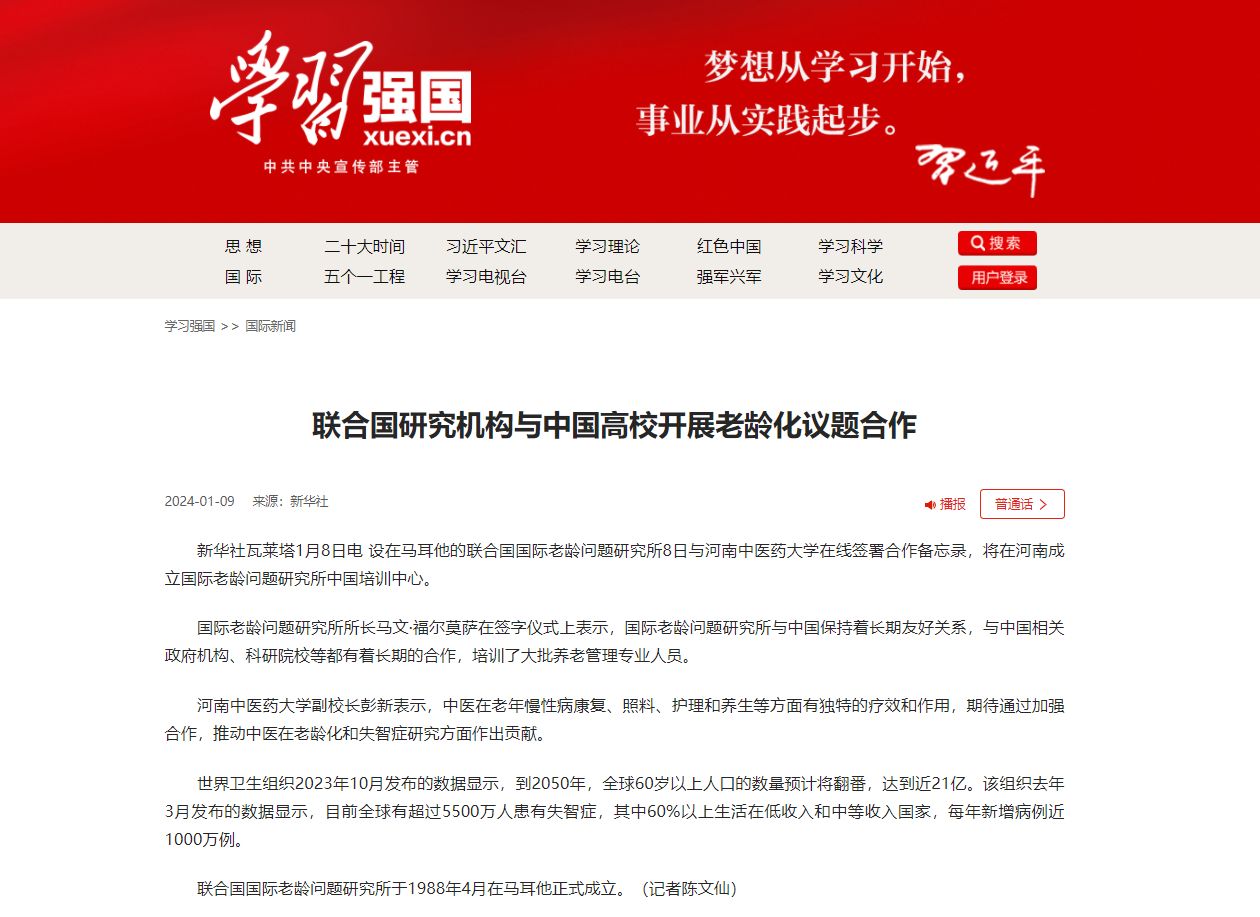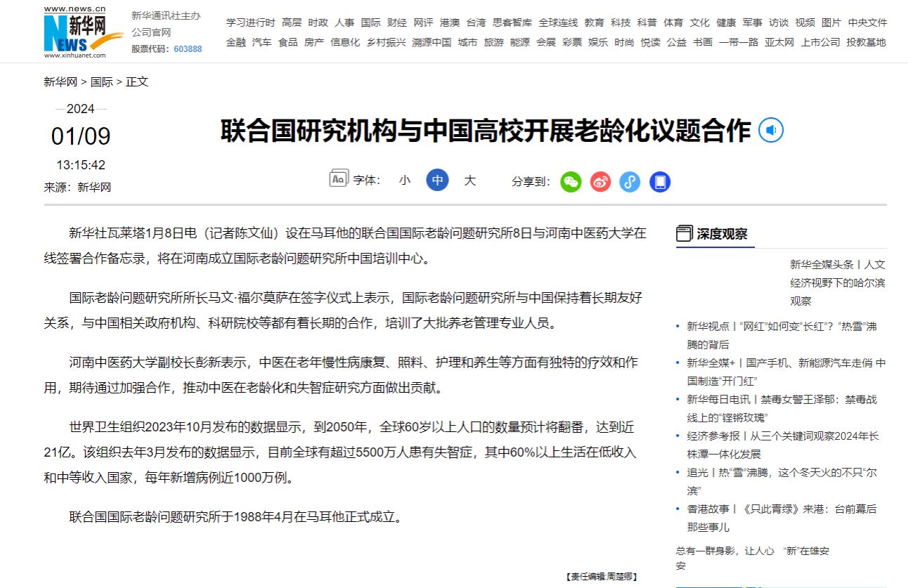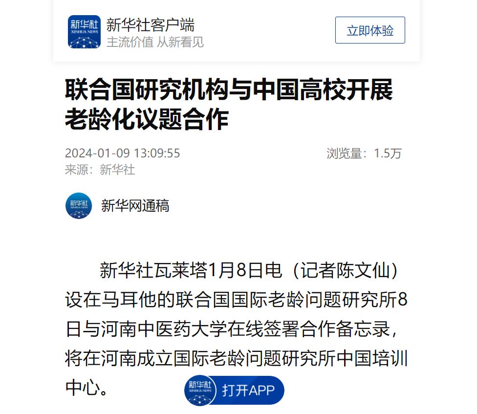 新华网、人民网、新华社客户端等丨联合国研究机构与中国高校开展老龄化议题合作