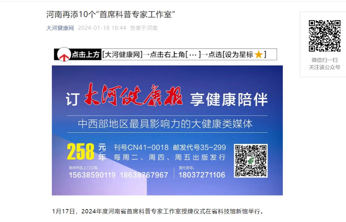 河南省首席科普专家是我省科普工作领域的最高荣誉性称号。省科协自2022年起设立首席科普专家工作室项目,每年遴选工作成效显著的首席科普专家及其团队进行支持。迄今,已连续支持建设了30个“首席科普专家工作室”,先后推出了一系列内容丰富、形式多样、注重实效的科普宣传活动。本次被授牌的“首席科普专家工作室”涉及医疗、农业、气象、地质、食品安全等多个领域。