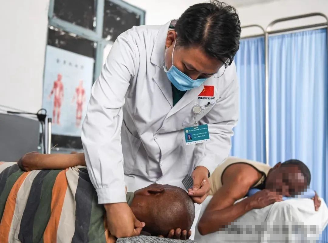 咸培伟在埃塞俄比亚亚的斯亚贝巴提露内丝-北京医院为病人做治疗