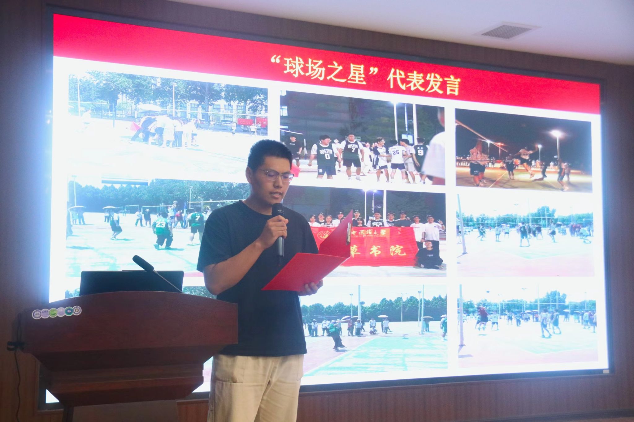 会议伊始,本草书院学生会体育部负责人刘琪进行了2023-2024学年书院体育工作汇报,总结了书院学子在学校各项体育赛事中取得的优异成绩,书院体育工作开展的特色和亮点。随后,根据同学们在体育活动中的表现,书院评选出“运动之星”“体能之星”“活力之星”“优秀体育干部”等优秀学子,获得荣誉者依次发言,分享了自己和团队奋力拼搏、勇往直前的感人故事,充分展现出本草学子朝气蓬勃、昂扬向上的青春风采,激励更多同学向榜样学习,不断追求卓越、超越自我。最后,育人导师胡春月充分肯定了大家的成绩与表现,对今后工作进行了规划。