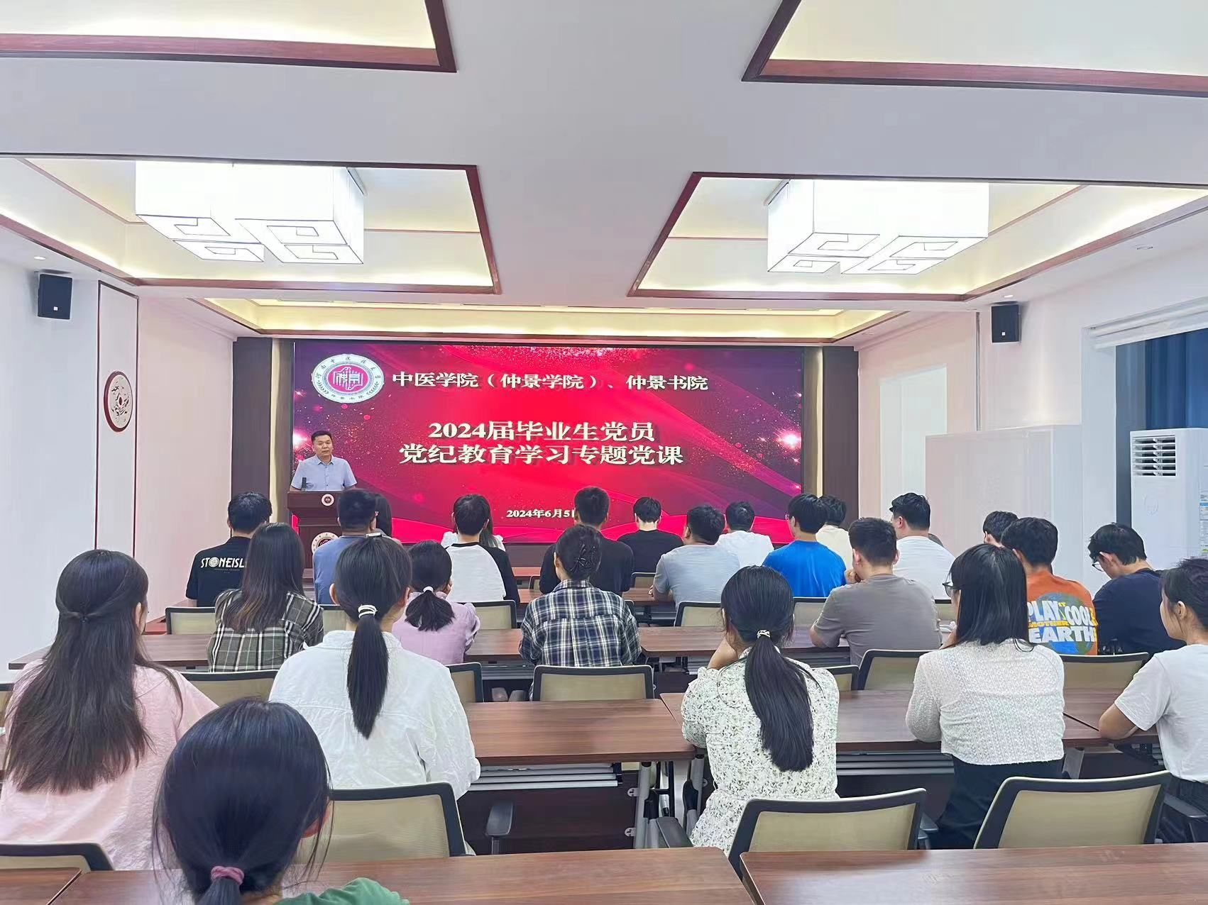 本网讯(文/图 赵申苒)为深入学习贯彻习近平总书记关于党纪学习教育的重要讲话和重要指示精神,开展好毕业生党员党纪学习教育,进一步做好毕业生党员教育管理,2024年6月5日,中医学院(仲景学院)召开2024届毕业生党员党纪学习教育主题党课,学院党委副书记徐里、毕业班辅导员及全体毕业生党员参加。