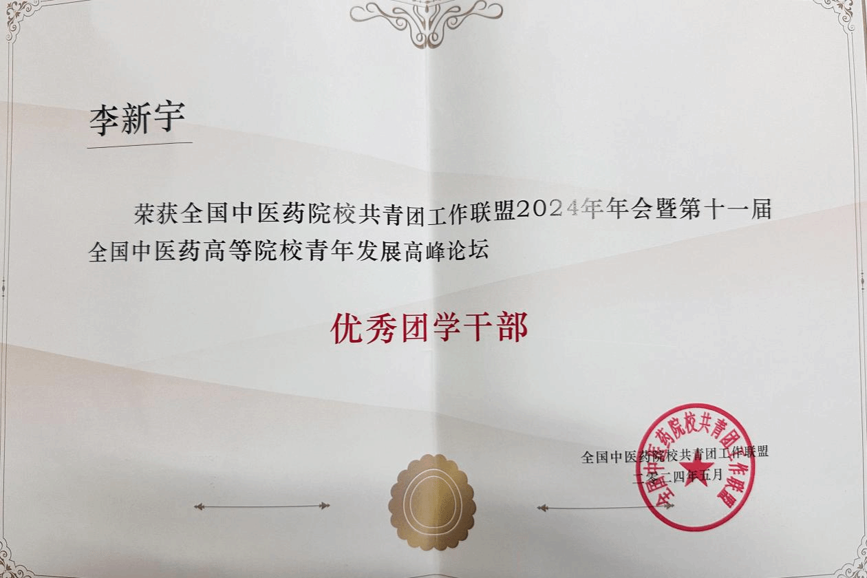 出彩丨一临床李新宇获第十一届全国中医药院校“优秀团学干部”荣誉称号
