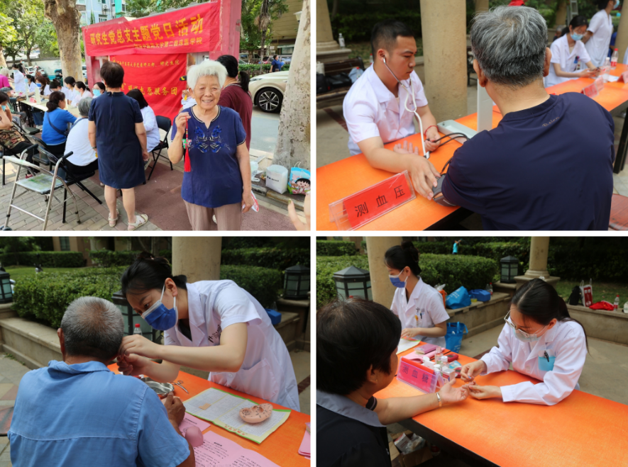 在活动现场,志愿者们首先用形象生动的语言为在场居民宣讲了端午节的起源习俗、端午节的养生知识、中医药文化知识和“顺应时节”进行养生的重要性,强调了按照季节变化调整生活和饮食习惯的必要性,使居民们对如何利用中医药知识保持身体健康有了更进一步的认识;同时,志愿者们为到场的居民赠送了由艾叶、藿香、薄荷等中药制成的香囊,其不仅有清新空气、驱虫和预防疾病的作用,也寓意着生活的健康和安宁。随后,志愿者们为广大社区居民进行测血糖、测血压、贴耳穴及健康咨询等服务,通过讲解常见疾病防治、详细询问身体状况,为社区居民提供了相应的健康建议和养生知识。