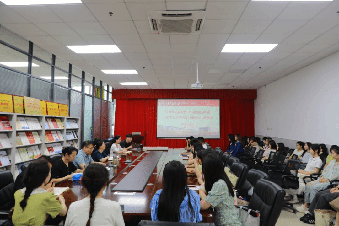 本网讯(文/席凯乐 图/张金霄)莘莘学子路,依依惜别情。在2024届毕业生即将踏上人生新征程之际,2024年6月11日,马克思主义学院在A129会议室召开2024届毕业生座谈会,马克思主义学院院长张会萍,副院长赵保海、郭伦,导师代表任滢,辅导员于嘉明,班主任刘岳超,青年教师郑艺帆以及全体研究生参加会议,本次会议由于嘉明主持。