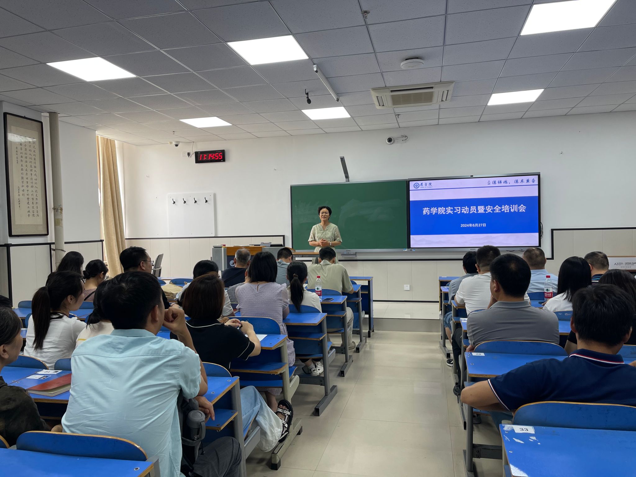 本网讯(文/张飞 图/邵沛璐)为确保2024年暑假期间中药资源学野外实习、药用植物学野外实习、药材市场、饮片厂见习、医院药学见习及认知实习等各项教学实习工作的顺利进行,药学院与本草书院于2024年6月27日在A334教室联合召开了暑期实习动员与安全培训会议。此次会议旨在加强实习前的准备,确保实习工作的安全有序进行。各专业带教老师、科研办、教学办及本草书院负责老师参加,会议由药学院副院长朱鑫主持。