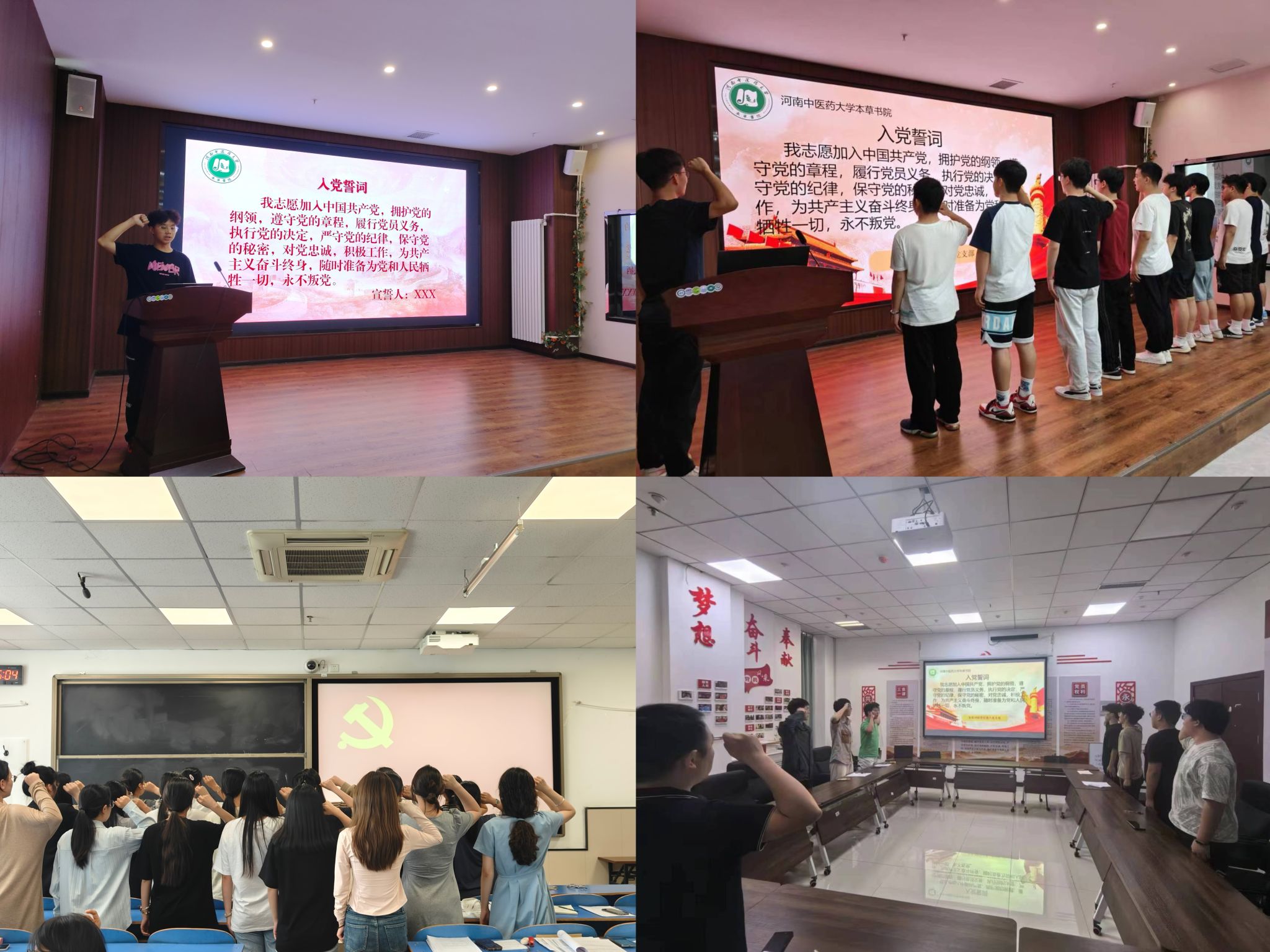 重温入党誓词,践行初心使命。2024年6月25日,本草书院各学生支部开展迎“七一”新党员入党宣誓活动。“我志愿加入中国共产党,拥护党的纲领,遵守党的章程,履行党员义务,执行党的决定……”。本草书院各支部书记带领师生党员和新发展党员同志面向鲜红的党旗,举起右手庄严宣誓,永葆入党初心、牢记职责使命、敢于担当作为。