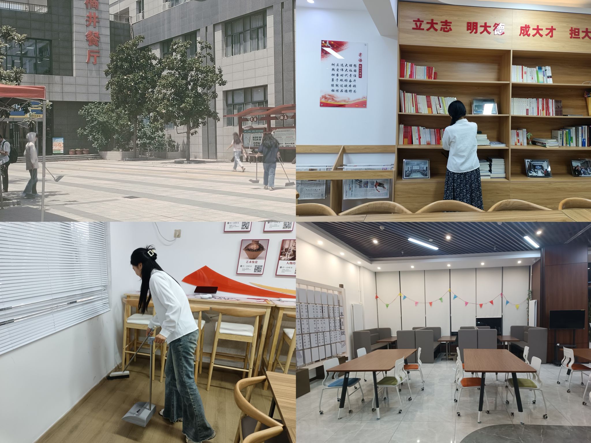 党建引领志愿红,我为师生办实事。2024年6月-7月,本草书院各党支部开展“我为师生办实事”志愿服务活动,切实做到全心全意为同学服务。进入期末复习周后,本草书院学生党员发挥先锋模范作用,继续协助书院社区管理,主动维持学堂秩序,每天坚持打扫社区卫生,不断提高服务质量,为同学们在考试周提供良好的学习交流环境。