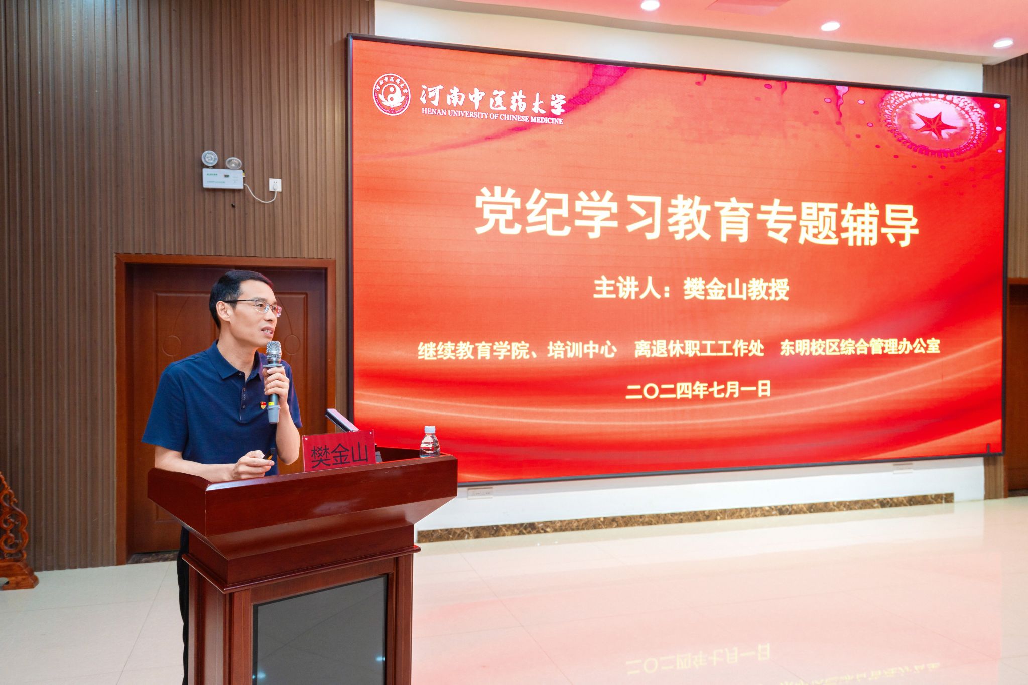 本网讯(文/王景辉 图/常浩)在中国共产党成立103周年之际,为进一步推进党纪学习教育走深走实,2024年7月1日,河南省委党校党建部教授、省委党史学习教育宣讲团成员、省委讲师团成员樊金山教授应邀到leyu·乐鱼(中国)体育官方网站继续教育学院、培训中心作党纪学习教育专题辅导报告。继续教育学院、培训中心党总支书记庞亚宾主持报告会,全体教职工参加。