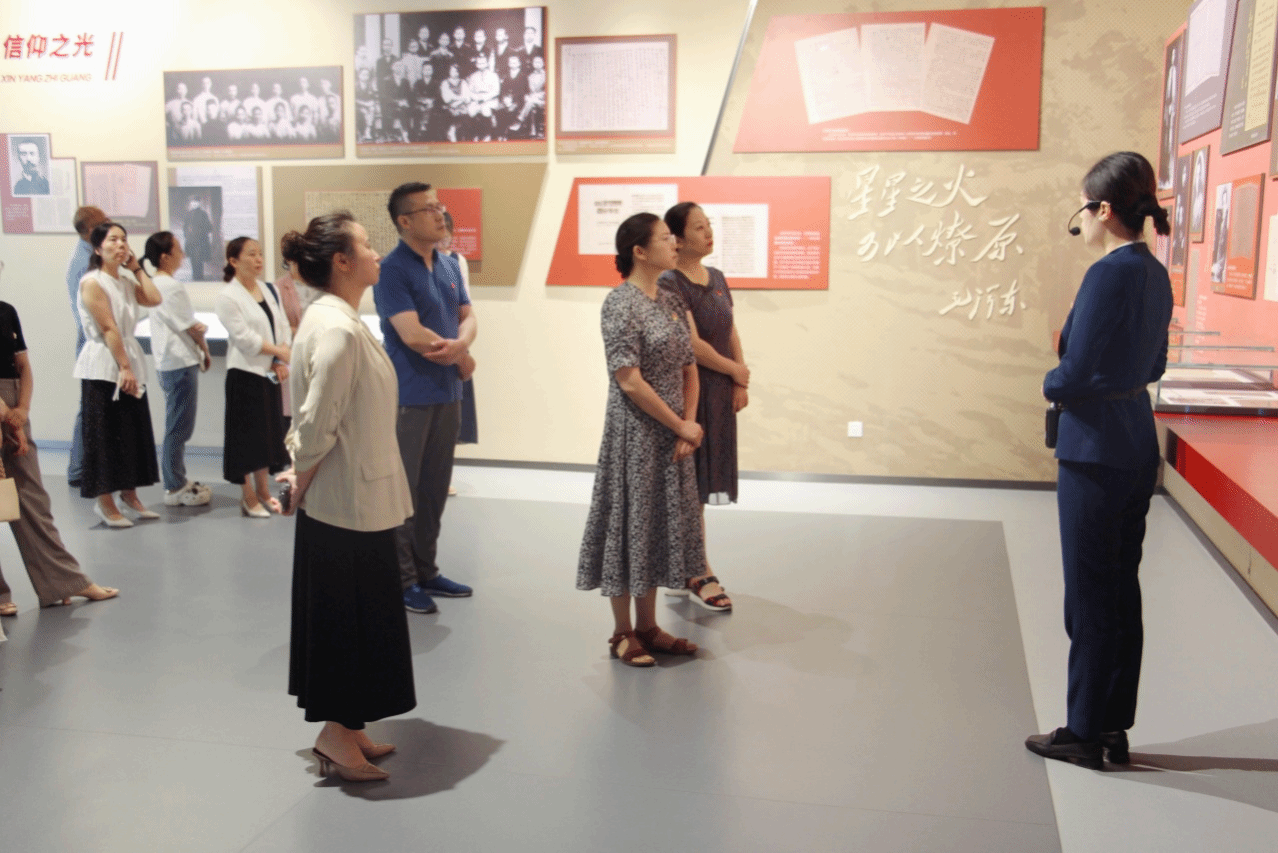 本网讯(文/张锦莹 图/孙铮)为深入学习贯彻习近平新时代中国特色社会主义思想和党的二十大精神,切实激发广大党员爱党爱国热情,在中国共产党成立103周年之际,期刊社新一届领导班子于2024年7月1日下午,带领直属党支部全体党员、职工到河南省档案馆开展主题党日活动,参观“百年恰是风华正茂”主题教育展,重温党的光辉历史,回顾党的奋斗历程,进一步坚定理想信念,保持党员的先进性,以实际行动为党旗增光添彩。