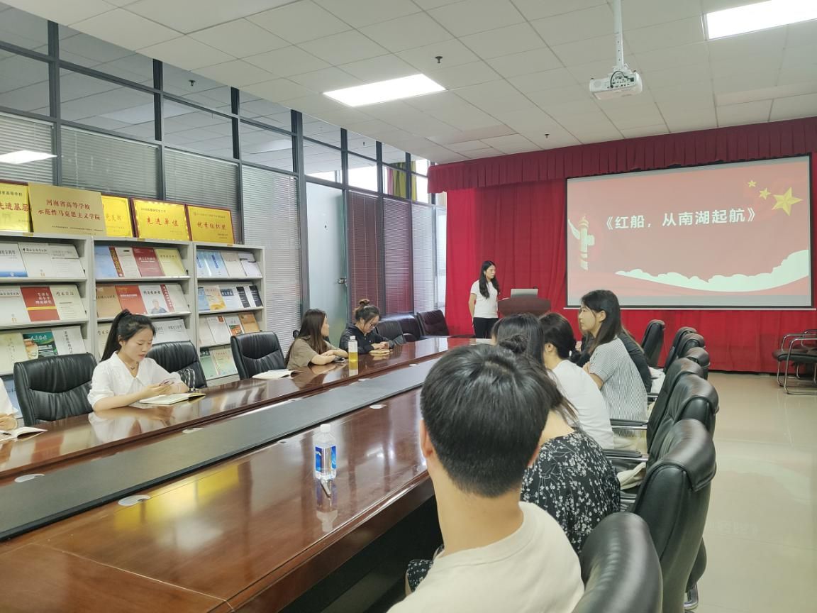 马克思主义学院研究生第一党支部的郭浩宇声情并茂的朗诵了《红船,从南湖起航》,让全体党员感受到了百年前从南湖启航的小船,承载着中国人民对独立自主的渴望、对繁荣富强的期盼;张婷婷、杨珂馨朗诵的《红船的方向》,带大家回顾了中国历史上开天辟地的伟大时刻,催人奋进。