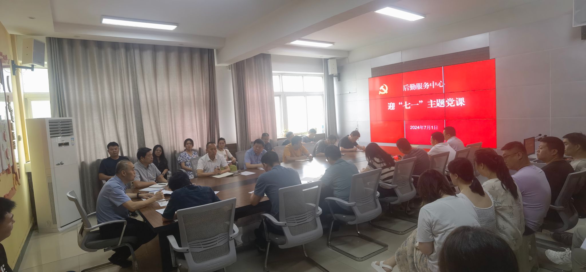 本网讯(图/孙远 文/崔俊杰)为庆祝中国共产党成立103周年,2024年7月1日上午,后勤服务中心党委组织开展系列“七一”主题党日活动。后勤服务中心班子成员、副科级以上干部及全体党员参加。后勤服务中心党委副书记、主任孟肖飞主持。