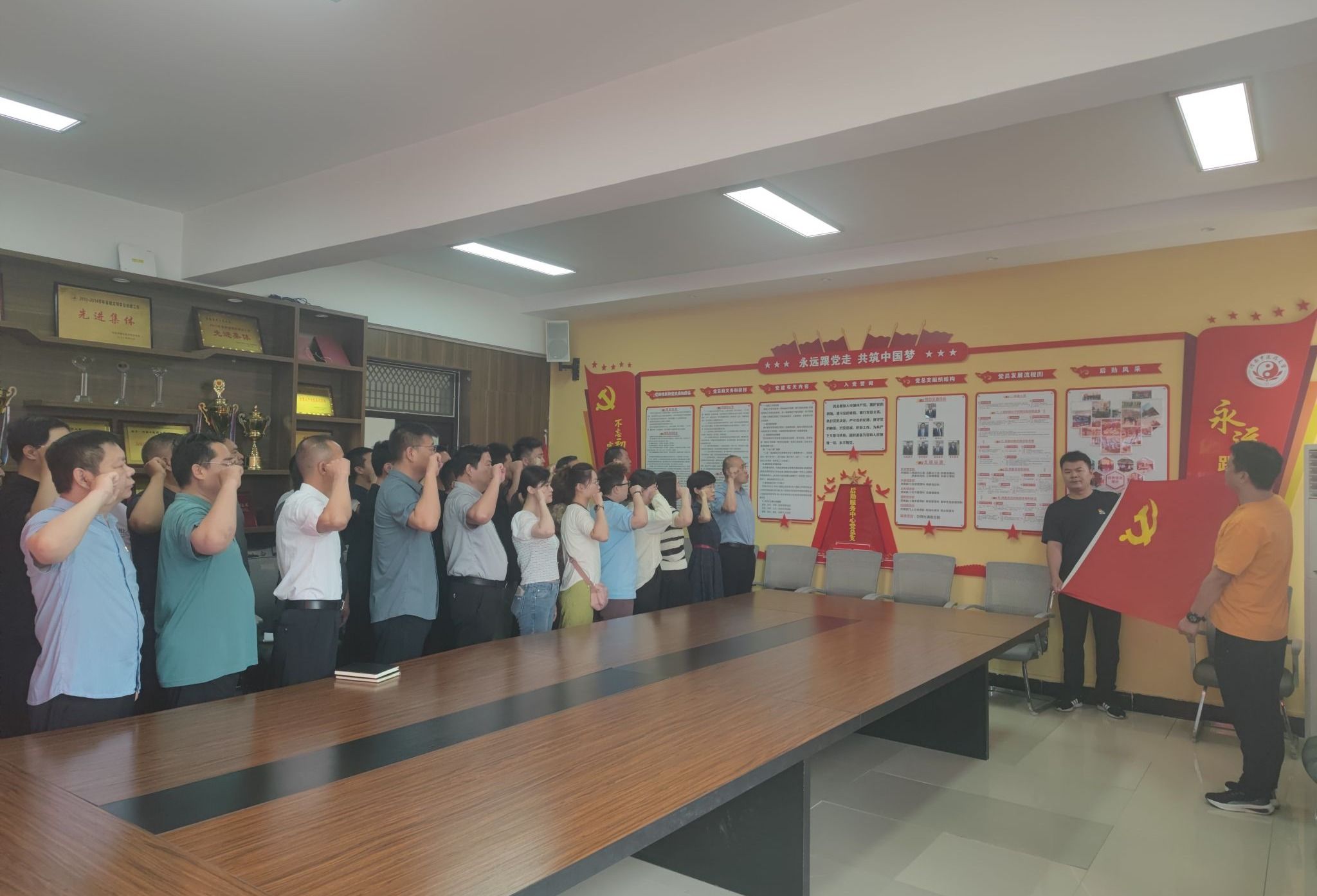 活动伊始,全体党员面对鲜红的党旗,举起右手,握紧拳头,在中心党委书记唐陆的领誓下,重温入党誓词。铮铮誓言,铿锵有力,表达了党员们对党的无限忠诚和为党的事业奋斗终生的坚定决心,进一步激发了党员们的政治热情和爱国情怀,坚定了理想信念。