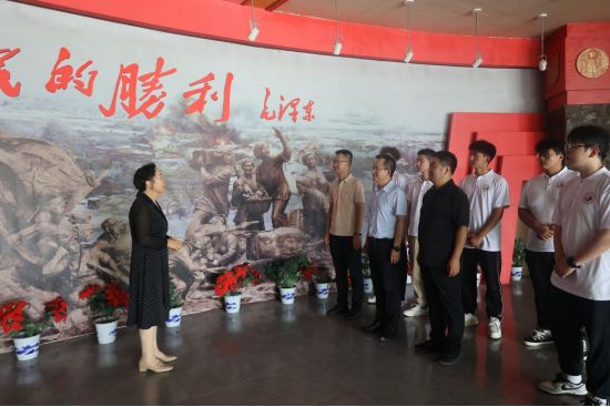 7月21日上午,团队师生一同走进了古井集团,参观领略中国酒文化。在古井集团的科技馆和地下酒窖,团队成员深入了解了古井贡酒的悠久历史、独特酿造工艺以及丰富的酒文化。参观不仅拓宽了同学们对中国酒文化的理解,也让他们对科技赋能传统产业有了更直观的认识。下午,团队师生来到了淮海战役陈官庄纪念馆。跟随讲解员的步伐,团队成员仔细参观了淮海战役陈官庄歼灭战纪念馆,详细了解了淮海战役的经过,一幅幅历史照片重现了革命先烈挥洒热血的壮举。参观结束后,刘金鸽教授为大家带来了一节生动的思政课。她讲到,淮海战役生动诠释了百年奋斗历史是人民书写的历史,有力证明了人民是真正的英雄,毛泽东称赞这是“人民的胜利”,淮海战役是一座光彩夺目的历史丰碑,543万民众的支持充分彰显了人民群众的伟大力量,向我们解答了中国共产党为什么“能”、人民解放军为什么“赢”的问题。纪念馆的参观与刘金鸽教授的讲解,让团队师生齐上了一场行走的思政课,接受了一场思想的洗礼。