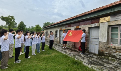 在黄湖农场队员们了解到在1969年为响应毛泽东同志的“五·七”指示号召,众多团中央机关直属单位的全体干部和工勤人员来到河南省潢川县的黄湖农场,并在此建立“五·七”干校,接受劳动锻炼和思想教育。四年多的时间里,广大干部群众发扬不畏艰险、战天斗地、自力更生、吃苦耐劳的乐观主义精神,为黄湖农场的建设发展作出了历史性贡献。陈列馆里的件件物品让队员们感受到了先辈们为推动国家发展,不怕困难,艰苦奋斗的坚定信念和无私奉献精神。参观完陈列馆后,李伟峰带领师生一起宣读了入党誓词,铿锵有力的誓言响彻云霄,让每一位师生深刻体会到了作为新时代青年的责任与使命。此次参观学习激励着全体师生继续传承和发扬革命先烈的优良传统和高尚品质,不忘初心、牢记使命、砥砺前行,为祖国的繁荣富强贡献自己的力量。