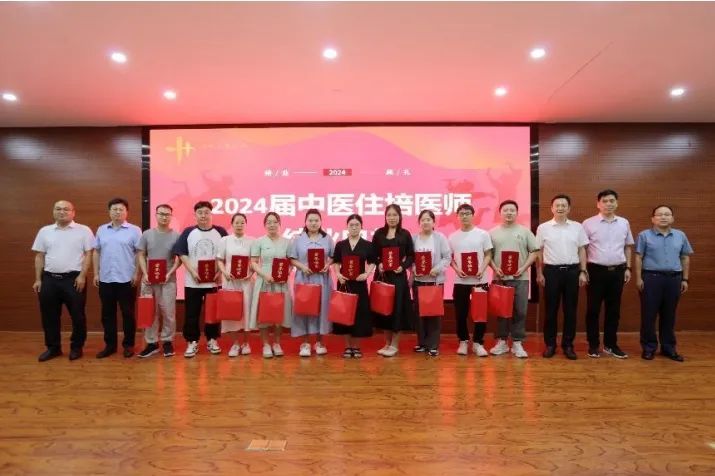 刘金厂代表二附院祝贺2024届住培医师顺利结业,并向全体规培医师提出三点希望和要求,一要不忘初心、牢记使命,以精湛的医术和高尚的医德,为更多的患者服务;二要胸怀理想、自立自强,躬身入局为中医药事业贡献力量;三要脚踏实地、追求卓越,做有理想、有梦想的医师。