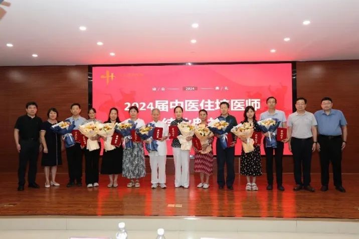 二附院领导为指导老师、带教老师、优秀住培学员代表颁发证书和纪念品,毕业生代表向老师们献花。在掌声中,二附院2024届中医规培医师结业典礼落下帷幕。