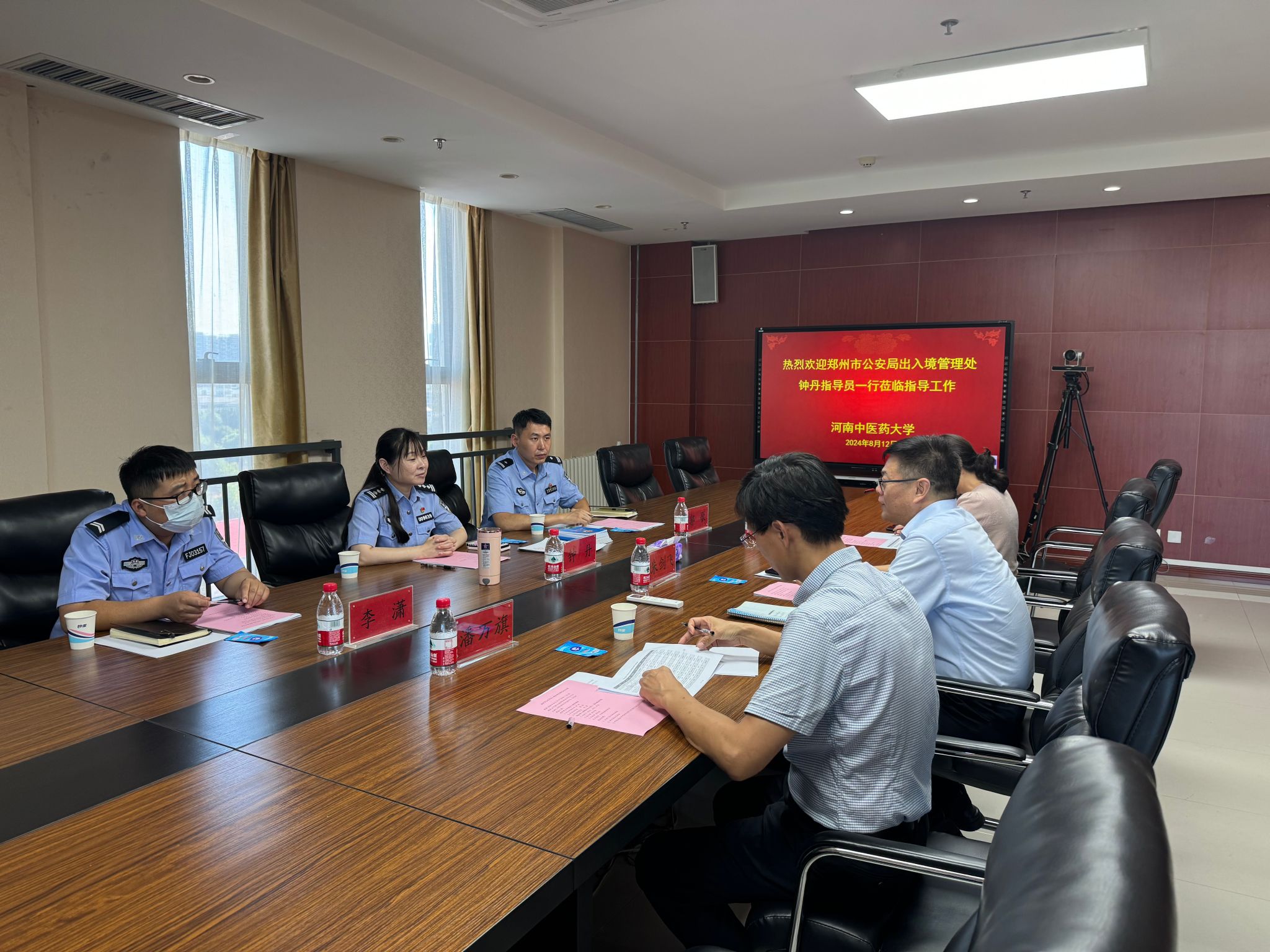 本网讯(文/李晓坤 图/刘力铭)8月12日,郑州市公安局出入境管理处外管科指导员钟丹一行3人来访leyu·乐鱼(中国)体育官方网站国际教育学院,就留学生管理相关工作进行走访调研。国际合作处处长、国际教育学院院长朱剑飞,副处长、副院长潘万旗、李晓坤等在6号留学生公寓楼会议室与来宾进行了座谈交流。