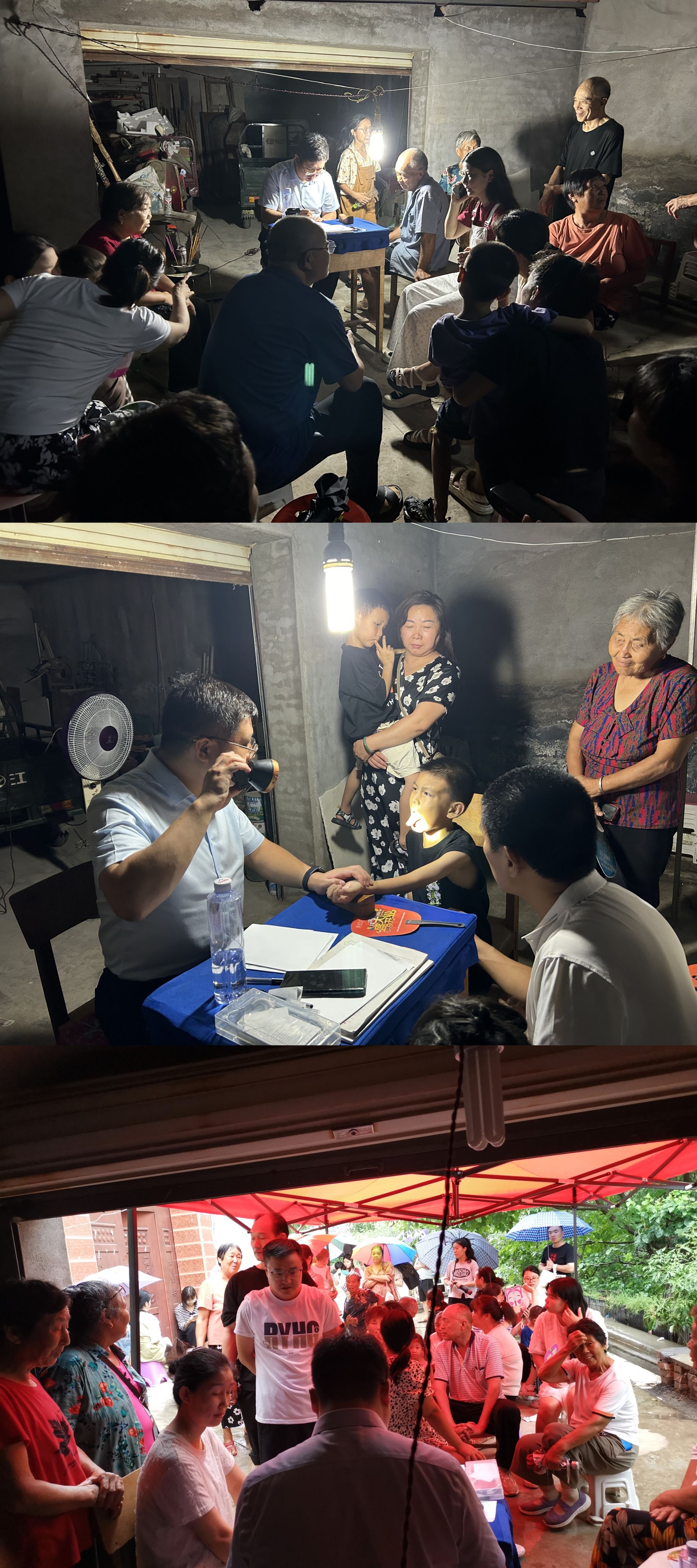 随着时间的推移,不知不觉天色已晚,家人们扯来简易的灯泡,照亮了小院也温暖了每一位就诊的村民。