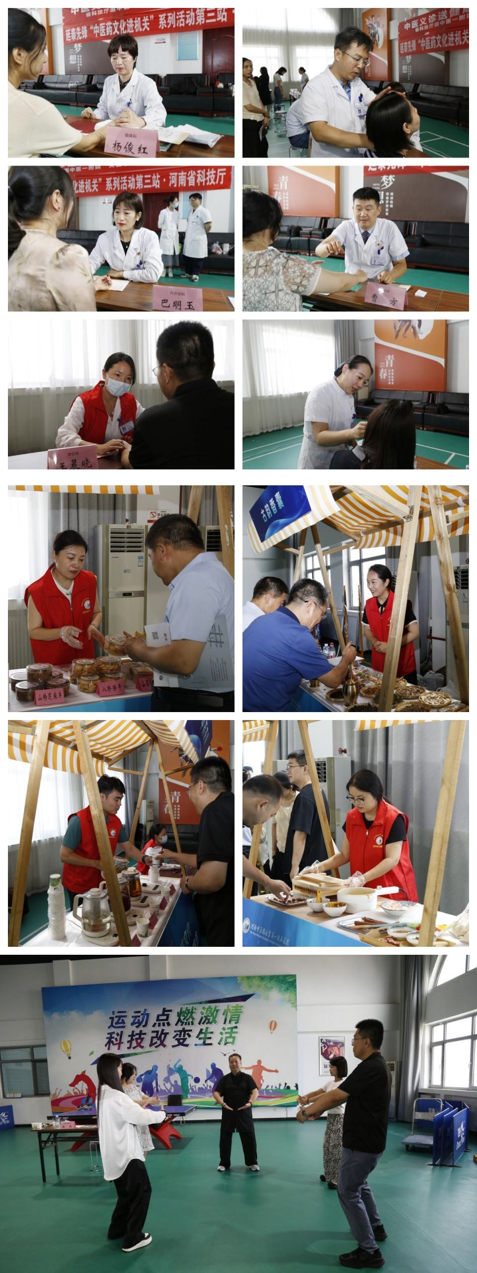 2024年8月16日,一附院“延泰先锋”志愿服务队走进河南省科技厅,以问名医、喝药茶、品药膳、制香囊、习八段锦、制药丸等“吃喝玩乐”内容多样的形式,为大家呈现了一场丰富的中医药文化盛宴,让中医药文化“飞入寻常百姓家”。