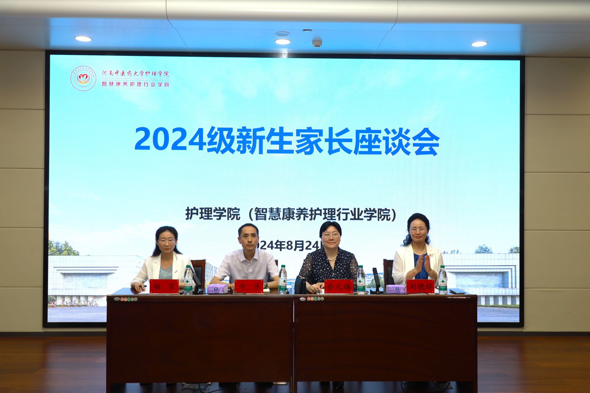 本网讯(文/赵静雯 杨晨羲 图/闫睿涵 )又是一年迎新时,为增进新生家长对学院的了解,加强学院与家长之间的沟通交流,进一步凝聚家校协同育人合力,确保新生顺利融入大学生活,8月24日下午,护理学院(智慧康养护理行业学院)在俊学楼114会议室召开2024级新生家长座谈会。学院领导班子成员、职能科室教师、班主任代表以及新生家长代表100余人参加会议。会议由学院党委副书记杨雪主持。