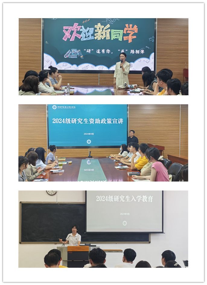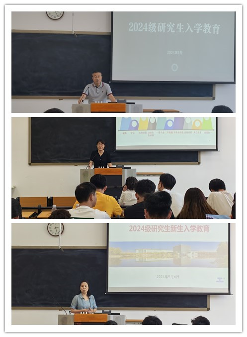 导师代表杨联河、科研办主任王白燕、科研实验中心主任牛春玲、研工办主任李晓娟、资助专员时润泽、研究生辅导员孙慧娟和优秀毕业生刘继红分别结合自身工作实际,就学业生涯规划、维护科研诚信、实验室安全防范、学位论文撰写、奖助贷政策、研究生日常管理、学习生活经验等方面进行分享。