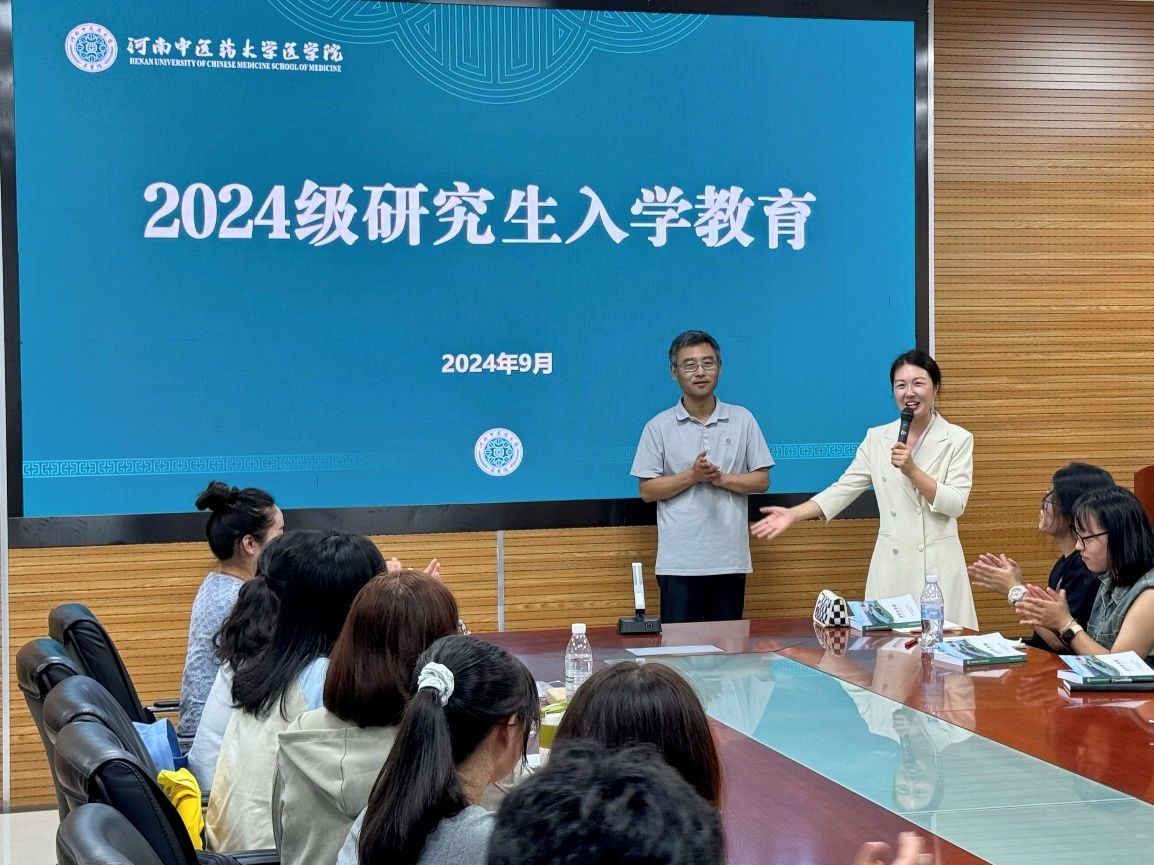 本网讯(文/图 孙慧娟)为加强研究生思想政治教育工作,引领研究生厚植爱党爱国情怀,引导研究生尽快适应学习、科研环境,9月6日至9月9日,在校党委学工部、研工部、武装部,校研究生院统一领导下,医学院科学谋划、精心组织,入学教育系列活动围绕“理想信念与形势政策”“校史院情与爱校荣校”“学业规划与职业发展”“科学道德与学术诚信”“教学培养与学位授予解读”“资助政策和奖助困补宣讲”和“日常管理与安全教育”等主题展开。医学院2024级全体研究生参加。