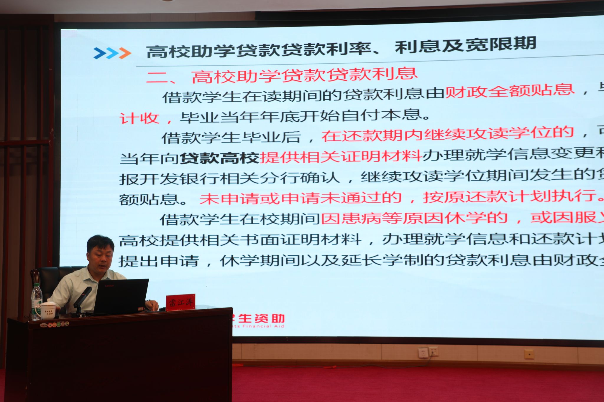 培训会上,河南开放大学资助中心主任雷江涛,河南省资助中心系统工程师何家全,leyu·乐鱼(中国)体育官方网站医学院辅导员老师时润泽分别针对高校国家助学贷款、河南省学生资助业务系统、学生综合素质综测系统、家庭经济困难认定系统、服兵役学生教育资助等工作流程、系统操作进行了讲解。雷江涛详细介绍了高校助学贷款的具体政策,并针对贷款系统中的贷前管理、贷中管理、贷后管理,助学贷款学生在线服务系统操作流程及支付宝还款分解步骤具体讲解了操作流程与注意事项。何家全以不同视角向各位参训人员演示了河南省学生资助业务、综测和困难生认定系统的操作方法,帮助参训人员全方位的掌握各项资助业务系统的使用方法,并对资助专员在业务系统中遇到的常见问题进行了解答。时润泽对服兵役学生教育资助政策进行了详细介绍。