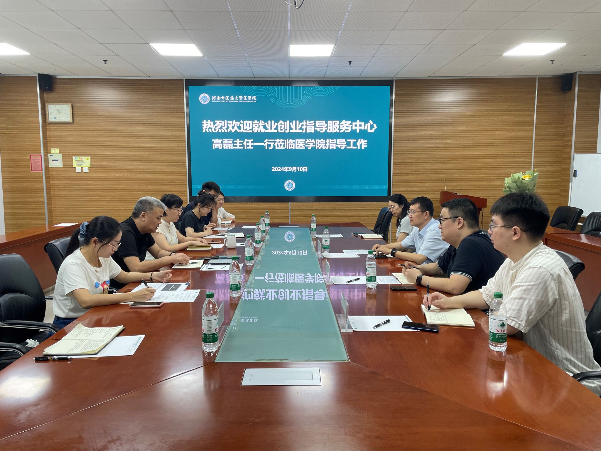 本网讯(文/戴冰星 图/时润泽)谋创新、长才干,促就业、话发展。为进一步推进学校就业创业工作,探索就业新思路、搭建创业新平台,提高指导能力、提升服务水平,2024年9月10日,校就业创业指导服务中心主任高磊、副主任宰炎冰以及赵云、刘超两位老师一行四人莅临医学院进行就业创业工作调研交流指导。医学院党委副书记孙俊波、学工办主任李倩、就业专员戴冰星、研究生辅导员孙慧娟以及2024届、2025届毕业班和2024级新生辅导员参加了调研会。
