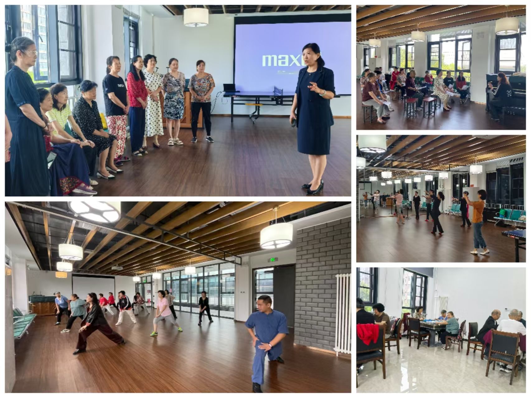 开放首日第一节八段锦课程,聘请了全国传统功法比赛冠军、陈氏太极拳第十三代传人梅永震老师前来授课。陆续来中心参加活动的老师,在梅永震老师的带领下,一招一式的跟练。一节课很快过去,老师们反应热烈、意犹未尽,纷纷表示,作为中医药特色传统健身项目,八段锦尤其对老年人身体舒展拉伸效果非常好,起到了强身健体的作用,大家纷纷鼓掌,感谢梅永震老师的认真授课。合唱团的老师们也聚集在一起,随着钢琴伴奏,悠扬歌声此起彼伏,他们洋溢着美丽的笑容。晚上,舞蹈队老师们如约而至,看到宽敞明亮的排练大厅,她们翩翩起舞,活动中心欢笑声,打破了宁静夜空。